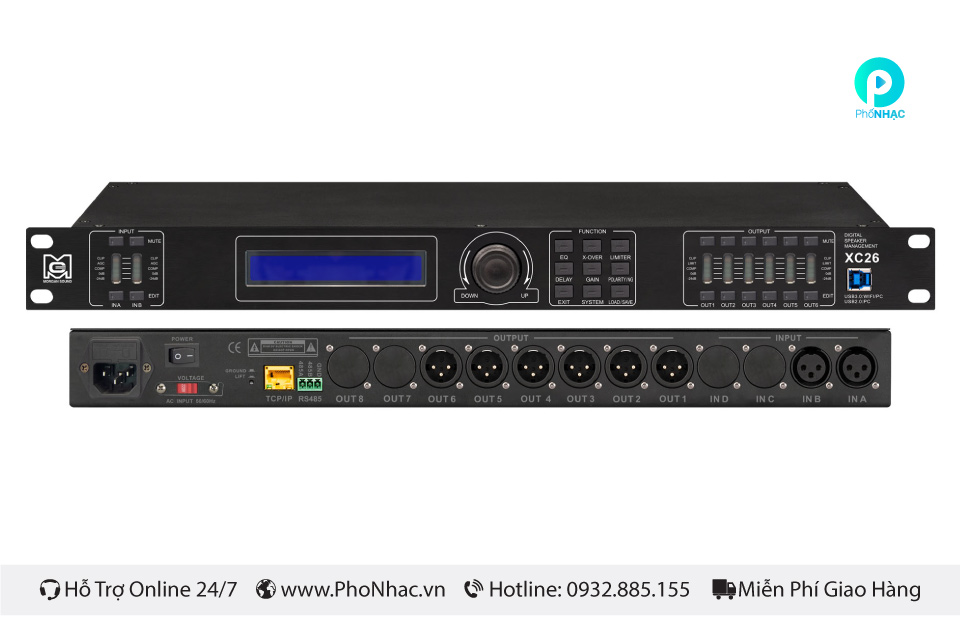Crossover số MORGAN SOUND XC26 – 2 IN 6 OUT là một thiết bị xử lý tín hiệu số chuyên nghiệp, được thiết kế để tối ưu hóa hệ thống âm thanh với độ chính xác cao. Sản phẩm này có 2 đầu vào cân bằng và 6 đầu ra cân bằng, sử dụng cổng XLR, phù hợp cho các hệ thống âm thanh sân khấu, hội trường, karaoke chuyên nghiệp, cũng như sự kiện ngoài trời và phòng thu âm.
