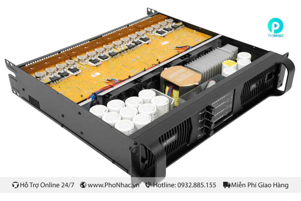 Công suất mạnh mẽ: 1500W/kênh (8Ω), 2500W/kênh (4Ω), hoạt động ổn định ở trở kháng thấp 4Ω.